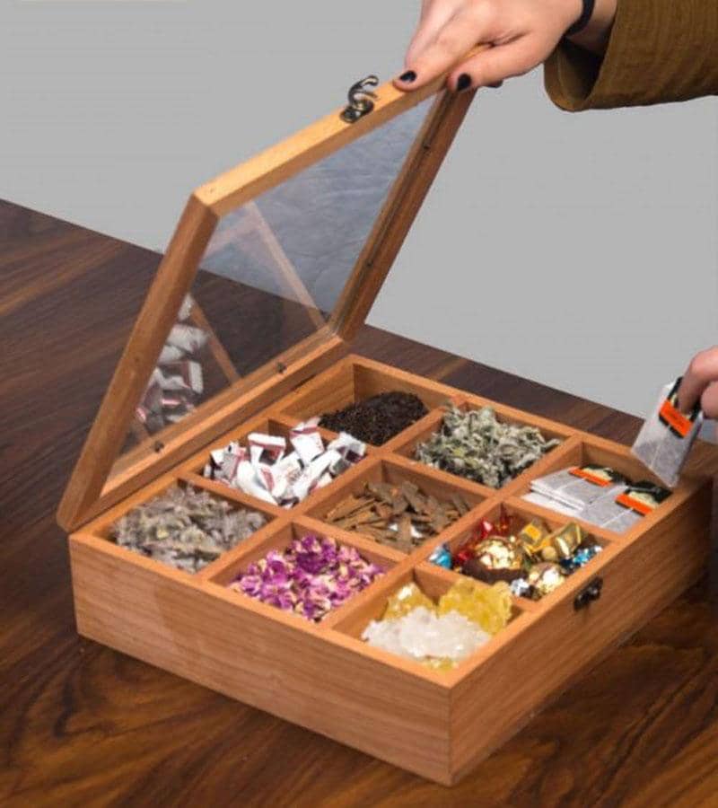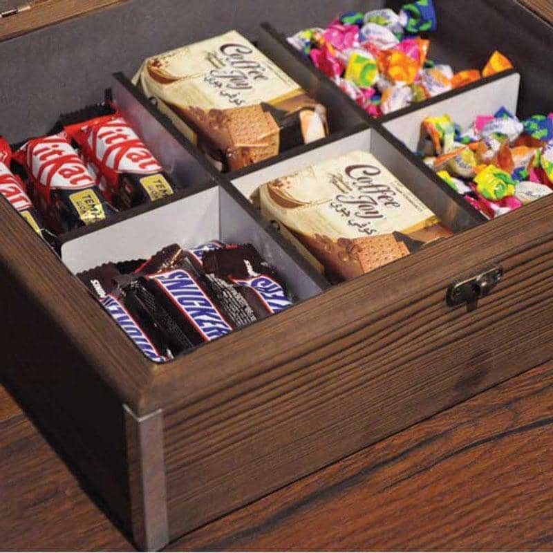 برخی از جعبه های پذیرایی تبلیغاتی صرفا برای قرار دادن انواع تی بگ مناسب اند. این جعبه ها دارای خانه های مربعی شکل اند. اما اگر قصد خرید جعبه هایی با کارایی بیشتر را دارید، می توانید از نمونه های دیگری که دارای خانه هایی برای قرار دادن آجیل، شکلات، بیسکوییت یا پاکت ای باریک و دراز انواع قهوه آماده اند استفاده کنید.